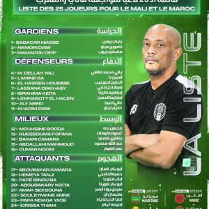 Amir Abdou a dévoilé sa liste des joueurs Mauritaniens qui participeront aux deux prochains matchs amicaux de mars 2024. Le