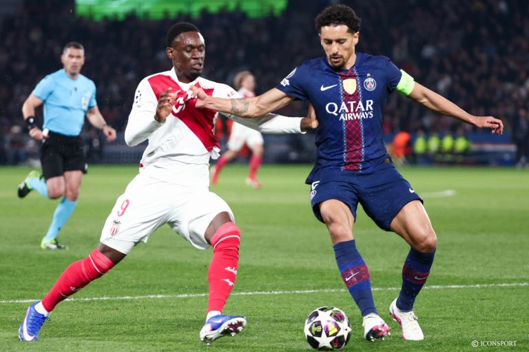 Le PSG accueillait au Parc des Princes l’AS Monaco en barrage retour de Ligue des Champions. En première mi-temps. Monaco se créé la première occasion. Akliouche trouve en retrait Coulibaly face au but, mais le milieu de l’ASM rate le cadre (10e) puis sur un coup-franc de Henrique, Kehrer ne cadre pas sa tête (12e). Le PSG réagit. Sur une mauvaise relance de Kohn, Neves donne à Doué qui, dans la surface, frappe largement au-dessus (30e). Après un une-deux, Barcola trouve la barre de ́Kohn (40e). Akliouche grâce à une déviation de Coulibaly suite à un centre de Henrique, ouvre le score pour Monaco (0-1, 45e). A la mi-temps, Monaco mène au score.