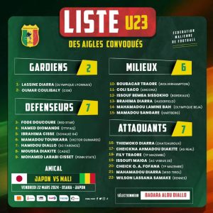 L’équipe nationale Espoirs du Mali sera en amical ce 22 mars 2024 contre le Japon à Osaka. Pour cette rencontre,