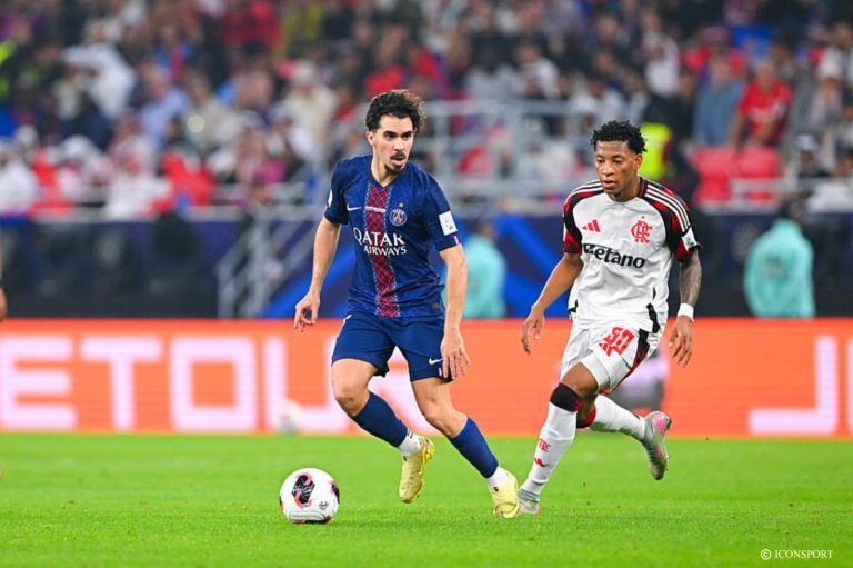 Le PSG est en quête d’un nouveau titre face à Flamengo pour la finale de la Coupe Intercontinentale de la FIFA au Ahmad-ben-Ali Stadium à Al Rayyan, au Qatar. Le club français se montre le premier en action. Sur un coup-franc, Vitinha remise au deuxième poteau pour Joao Neves dont le tir passe de peu à côté du but de Rossi (5e). Lee tente sa chance mais le portier de Flamengo capte le ballon (6e).