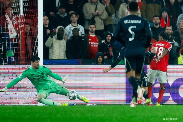 38′ Richard Rios oublié dans la surface récupère un ballon mal repoussé et frappe au but. son tir est brillamment repoussé par Courtois.