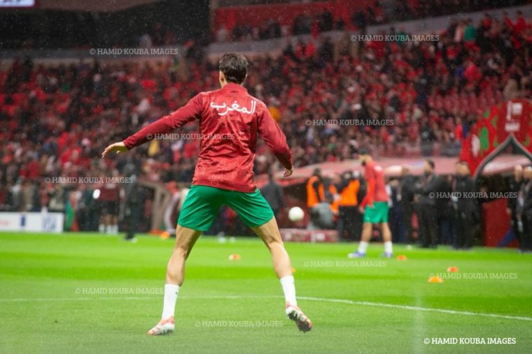 Les Lions de l’Atlas confisquent le ballon et installent le jeu dans le camp comorien, mais peinent encore à se montrer réellement dangereux.