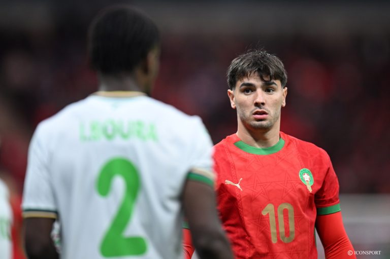 Après consultation de la VAR, l’arbitre désigne le point de penalty. Gassama est sanctionné pour une main dans la surface sur une action avec Brahim Diaz.