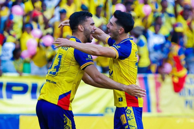 Petro Luanda surprend l’ES Tunis grâce à Tiago Reis. Le Brésilien est trouvé à l’entrée de la surface, il enroule du droit, Béchir Ben Said ne bouge pas et constate les dégâts.