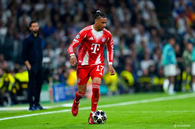 32′ Parti dans un raid solitaire, Olise élimine Mendez et fait un centre contré qui touche le poteau gauche de Safonov.