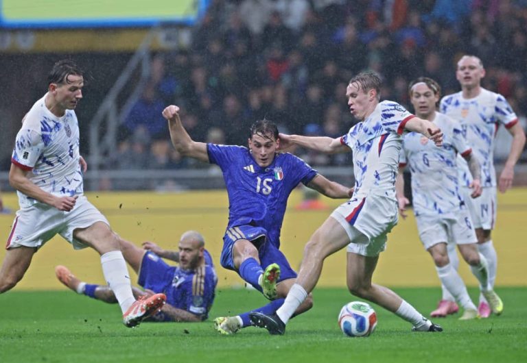 L’Italie mène face à la Norvège à la pause (1-0). Les deux équipes s’affrontent ce dimanche 16 novembre dans le cadre de la 8e journée des éliminatoires de la Coupe du Monde 2026.