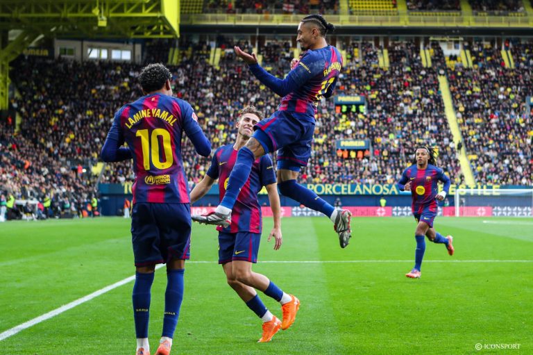 En déplacement à l’Estadio Ceramica, Barcelone a pris le meilleur sur Villarreal FC sur la marque de 0-2. Un succès qui s’est dessiné en première partie avec l’ouverture matinale de Raphinha. L’ailier brésilien a donné l’avantage aux siens à 12e minute sur penalty. Villarreal aurait pu aussi faire la différence, mais a manqué de réalisme. La rencontre prend une autre tournure avec l’expulsion de Renato Veiga. L’arrière gauche portugais tacle par derrière Lamine Yamal et écope d’un carton rouge direct à la 39e minute. Plus de peur que de mal pour le prodige espagnol qui scelle définitivement le sort de la rencontre à la 63e minute de jeu. Barcelone s’impose donc 0-2, face à Villarreal et conserve son fauteuil de leader.
