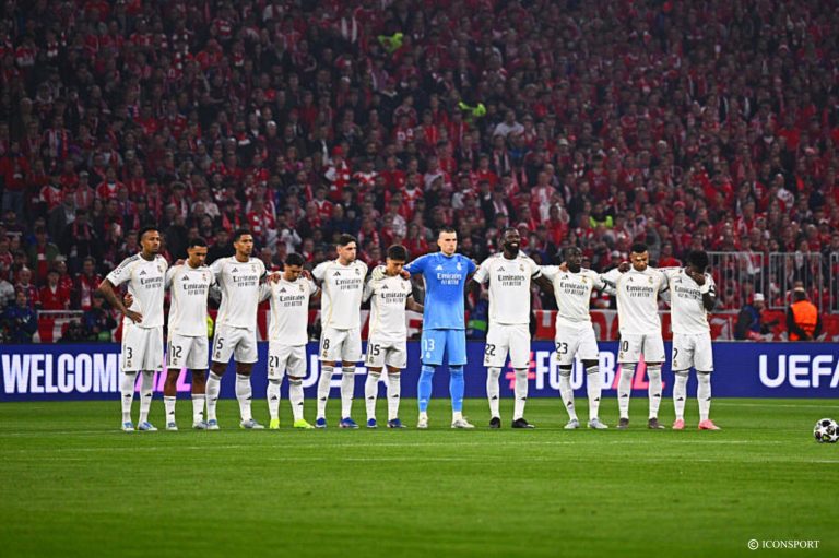 C’est parti au Bernabéu ! Le Real Madrid donne le coup d’envoi de la rencontre après une minute de silence en hommage à José Emilio Santamaría, quadruple vainqueur de la Coupe des clubs champions européens avec le Real Madrid, décédé à l’âge de 96 ans.