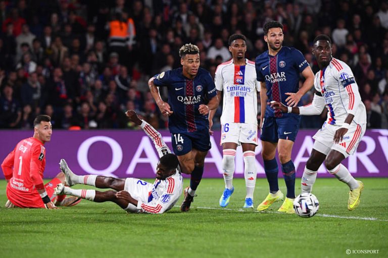 En match de clôture de la 30e journée de Ligue 1, le PSG défie au Parc des Princes, l’OL. En première période, les Gones ont climatisé l’enceinte parisienne avec deux buts d’Endrick (6e) et Moreira (18e). Ramos a raté un penalty pour Paris (31e). À la mi-temps, l’OL mène 2-0 face au PSG qui a perdu Vitinha, sorti blessé à la 38e. Après 45 minutes de jeu, Lyon est de retour sur le podium du championnat.