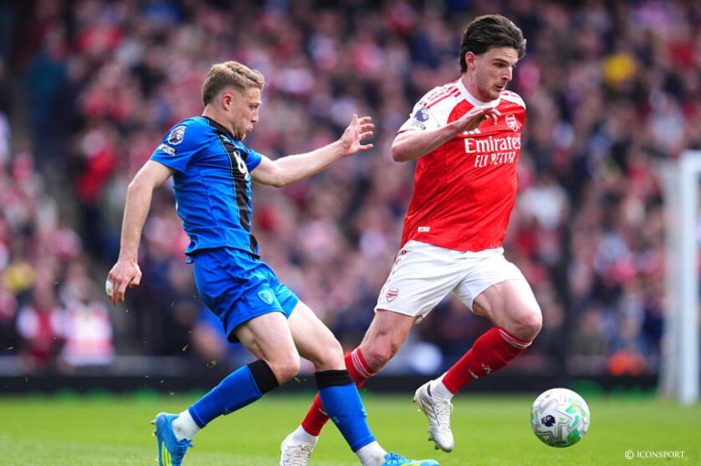 Declan Rice franchit un cap symbolique ce samedi après-midi contre Bournemouth. Le milieu de terrain anglais dispute sa 100e titularisation en Premier League sous les couleurs d’Arsenal, confirmant ainsi son statut de pièce maîtresse chez les Gunners.